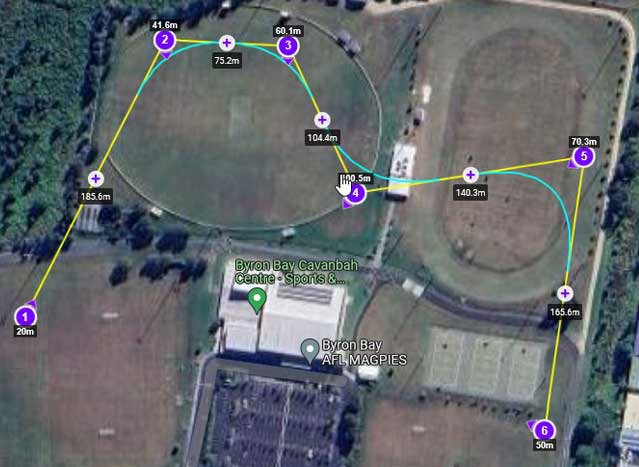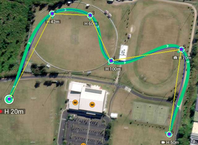 Upon initial inspection, the flight path created using Litchi might appear to be generated using a B-Spline because if follows a similar path to that of a B-Spline. However, Litchi provides a way to adjust the curve size at each waypoint and a B-Spline does not provide that capability.