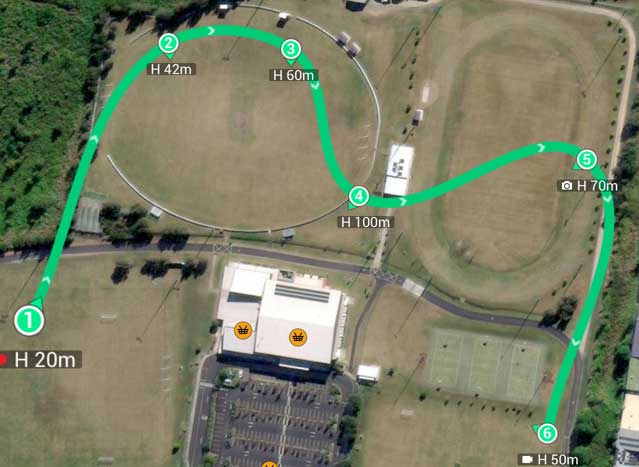 Below are displayed two waypoints missions using the same waypoints. The mission on the left was created with Litchi. The mission on the right was created with DJI Fly.